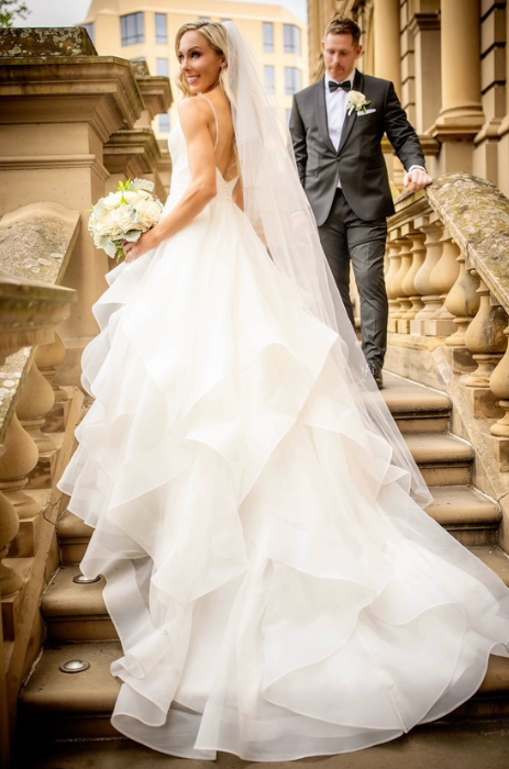 Her wedding gown was a total knockout! The voluminous flounced organza skirt was dramatic enough to make a statement, but classic enough to stand the test of time.