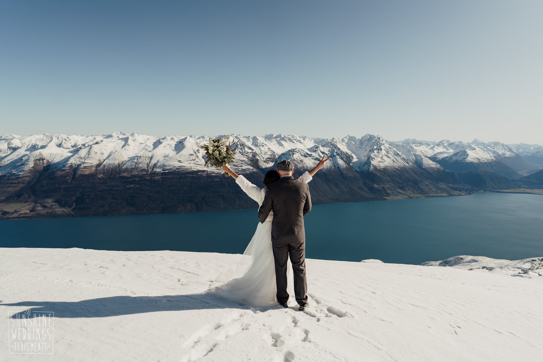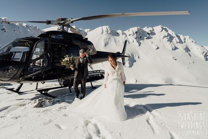 Travelling by helicopter to Moke Lake, just out of Queenstown, Dwan and her now Husband tied the knot on top of a GLACIER!!