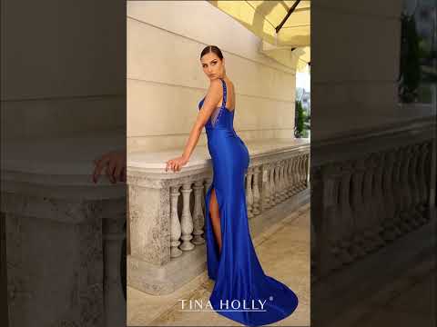 Turn heads with this playful corset gown featuring a daring leg split and sparkling beaded straps. Designed to flatter your silhouette, it combines elegance with a touch of fun, perfect for making a memorable entrance at any event.