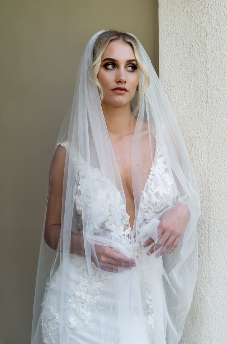 Experience the true elegance of our Florence veil, crafted from luxurious Italian tulle. Its raw cut edge showcases the beauty of the fabric, available in both 1 and 2 tier styles. Perfect for the minimalist bride seeking a stunning complement to her gown.