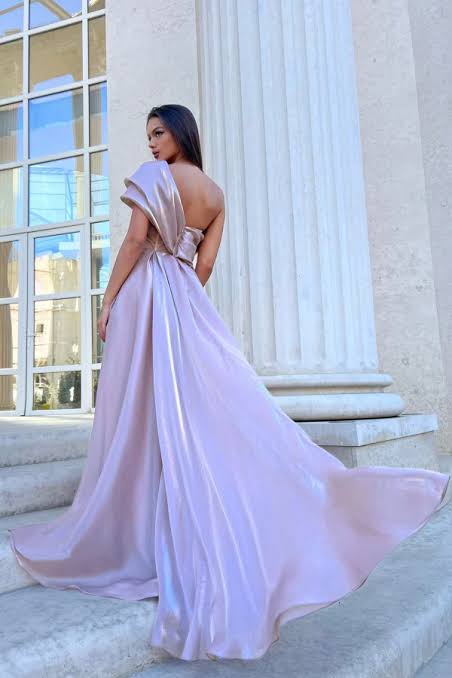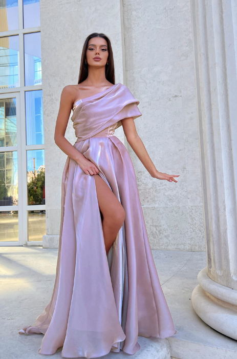 Look like a goddess in this dreamy Musk pink gown! Featuring a graceful draped sash shoulder and a heavenly full skirt with a daring side split and pockets for convenience, you won't want to take it off. The fabric is like liquid silk, and it's sure to make you stand out at any special event. Soar away in style!