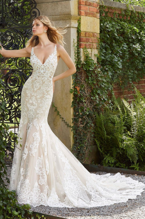 Pascha by Morilee is the perfect expression of romantic elegance, with a fit and flare lace mermaid design and exquisite sheer illusion back, accented with buttons for an unforgettable statement. Unsurpassed in its craftsmanship and quality, this is an exquisite gown for the modern bride who desires a timeless, yet lavish look.