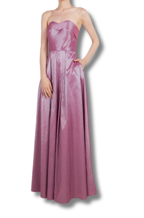 This pearlescent strapless gown is the perfect choice for your next formal event. The unique fabric adds a touch of elegance and sophistication, while the sweetheart neckline and ball gown design flatter any figure. Make a statement and turn heads with this stunning dress.