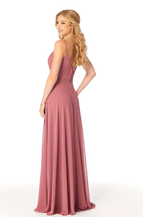 This chiffon bridesmaid dress is anything but ordinary! Featuring a v-neckline, twist-knot bodice, and delicate spaghetti straps, this dress is perfect for any special occasion. Available by special order only, this dress will make any bridesmaid stand out in style.
