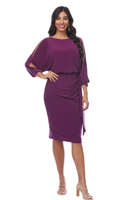 Add some sparkle to your wardrobe with our Stretch Cold Shoulder Dress. Made of comfortable stretch jersey fabric, this dress features a round neckline, sleeve slits, and a unique shoulder diamante detail. Plus, it's designed to flatter your tummy area. Perfect for any occasion!