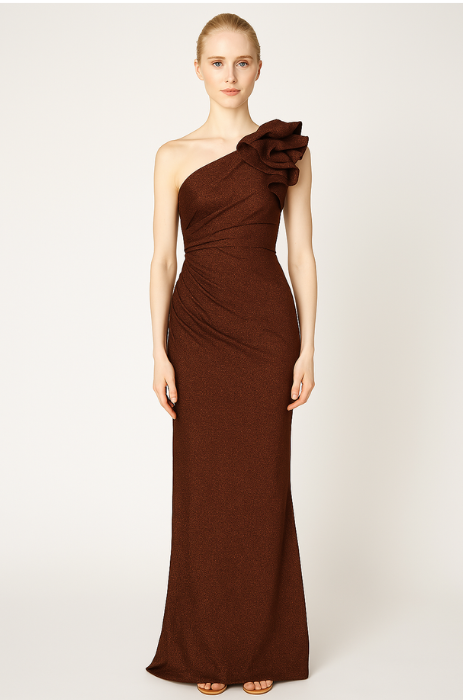 Fashion and function come together in our structured flounced one shoulder dress. Made with stretch lurex fabric, this dress offers both comfort and style. The one shoulder feature adds a touch of elegance to this chic and versatile piece. A must-have for your wardrobe!