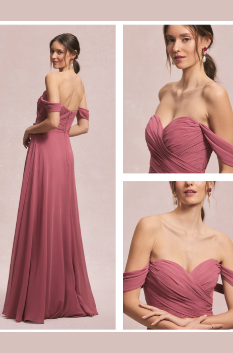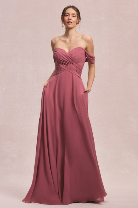 Make your bridesmaids swoon with this sweetheart chiffon dress! The ruched bodice provides an elegant touch while the a line skirt with pockets adds functionality.