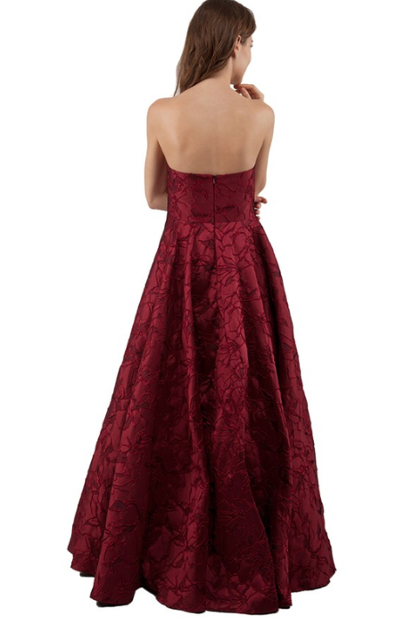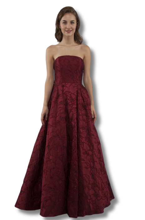 Step into the spotlight with this textured satin ballgown that’s pure glamour. The strapless design and straight neckline highlight your shoulders with a flirty, playful charm. Perfect for twirling the night away in style and making every moment unforgettable.