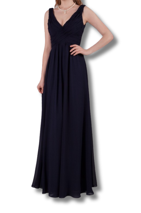 This floaty chiffon gown features a playful V-neck and a ruched bodice that adds charming texture. The skirt’s unique gathering at the center waist creates a flattering vertical line, enhancing your silhouette while keeping the sides smooth and sleek. Perfect for twirling through any occasion with effortless grace.