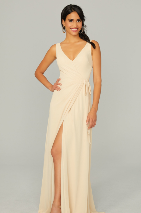 Be the belle of the ball in this stunning V neck chiffon wrap dress. Luxuriously crafted from lightweight, flowing chiffon, this gown is perfect for any formal occasion. Its elegant silhouette flatters any figure, while its subtle shimmer will add a touch of sophistication. Make a statement and be remembered with this lavish wrap dress.